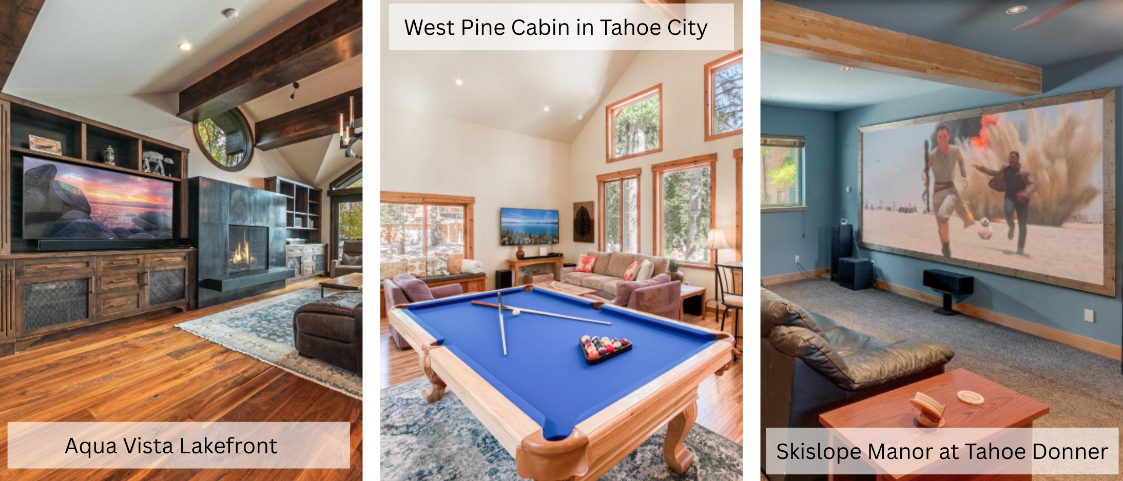 You’ll find cabins, condos, and vacation homes throughout North Lake Tahoe — especially near popular hubs like Northstar, Tahoe City, Trucke, and Olympic Valley. These range from cozy two-bedroom retreats to large multi-bed homes ideal for groups or families. Here are some available vacation homes: